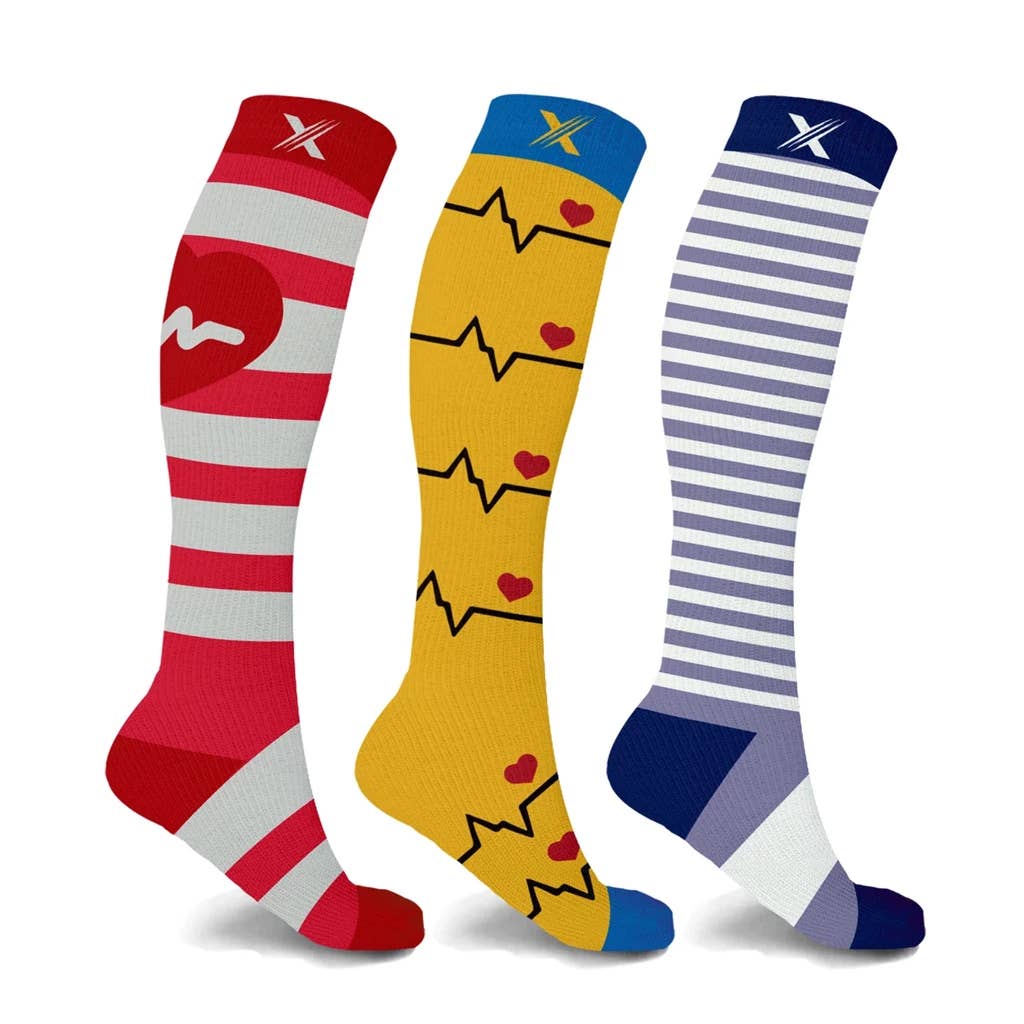 Chaussettes de compression unisexes grises Cardiac Rhythm, jusqu'aux genoux en vente B2B