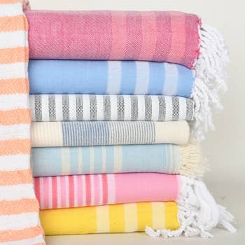 Lot de 10 serviettes de plage EBRU Home en coton turc multicolores, sans sable, motif rayures cabana