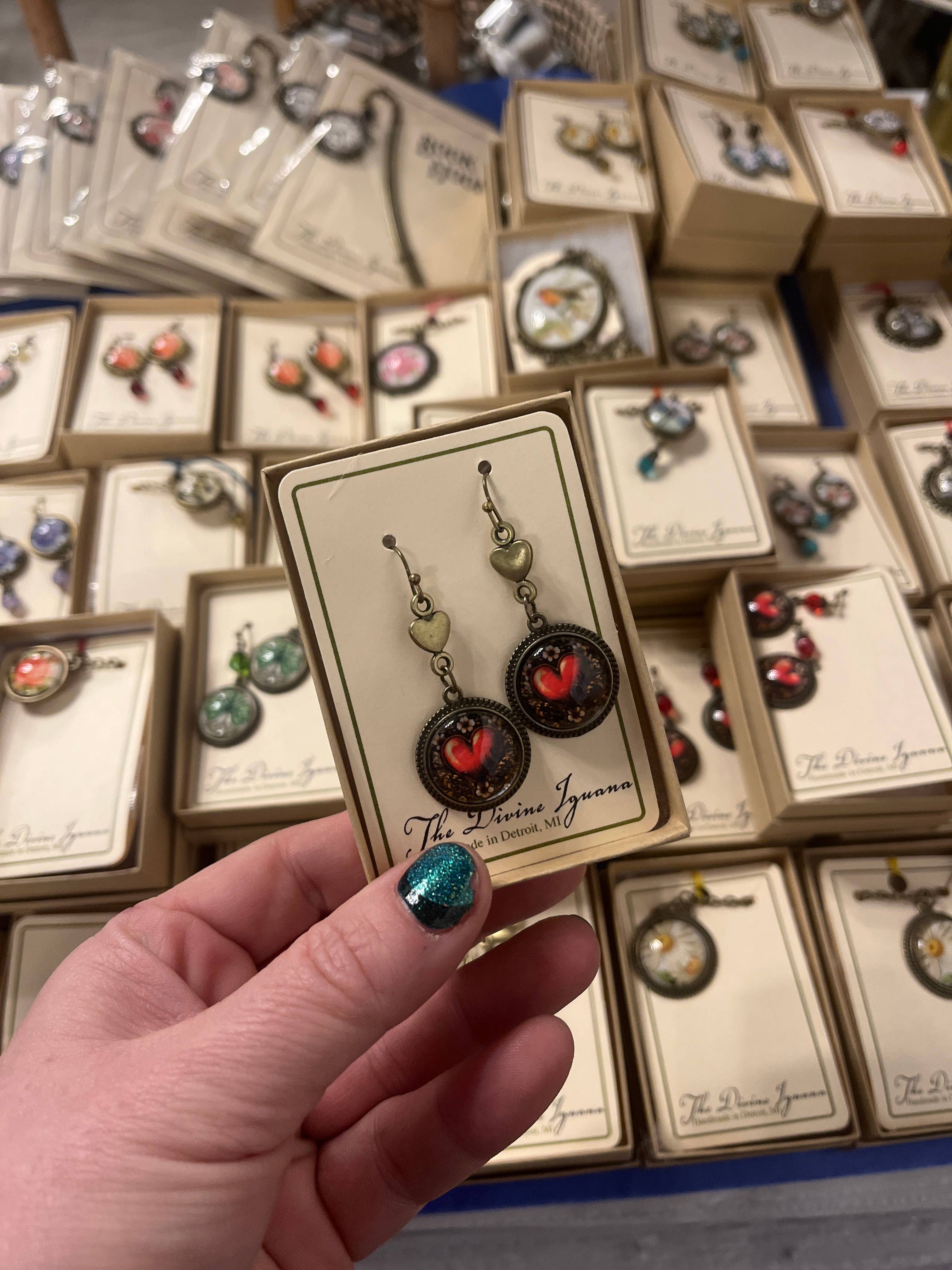 Grand cabochon ovale en verre de 30 x 40 mm découpé à l'envers avec une illustration vintage d'un rouge-gorge. Le pendentif est placé dans une lunette en bronze vieilli ornée sur une solide chaîne en bronze de 18 pouces de long avec chaîne de réglage et perle de finition. Les pendentifs sont livrés avec une étiquette volante ET une boîte-cadeau en carton aggloméré pour une présentation polyvalente. Ils ont un peu plus de poids que le reste de la gamme et ont l'air luxueux à la fois dans leur boîte ou suspendus.