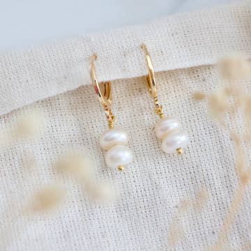 Boucles d'oreilles huggie en acier inoxydable 18K avec pendentif en perle FGS en vente B2B