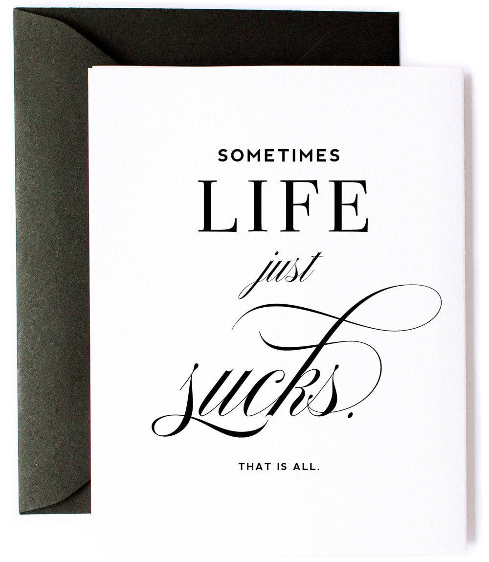 Parfois, la vie peut sembler vraiment foutue et injuste, comme si elle nous servait un grand plateau de conneries que nous n'avons jamais commandé. MESSAGE À L'INTÉRIEUR : ["sache simplement qu'il y a une tonne d'amour qui vient de l'intérieur de cette carte."]