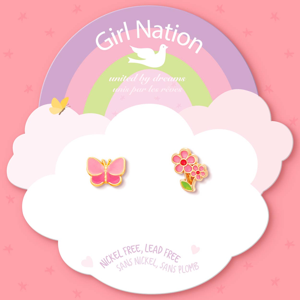 Boucles d'oreilles papillon rose à vis en argent sterling en vente B2B