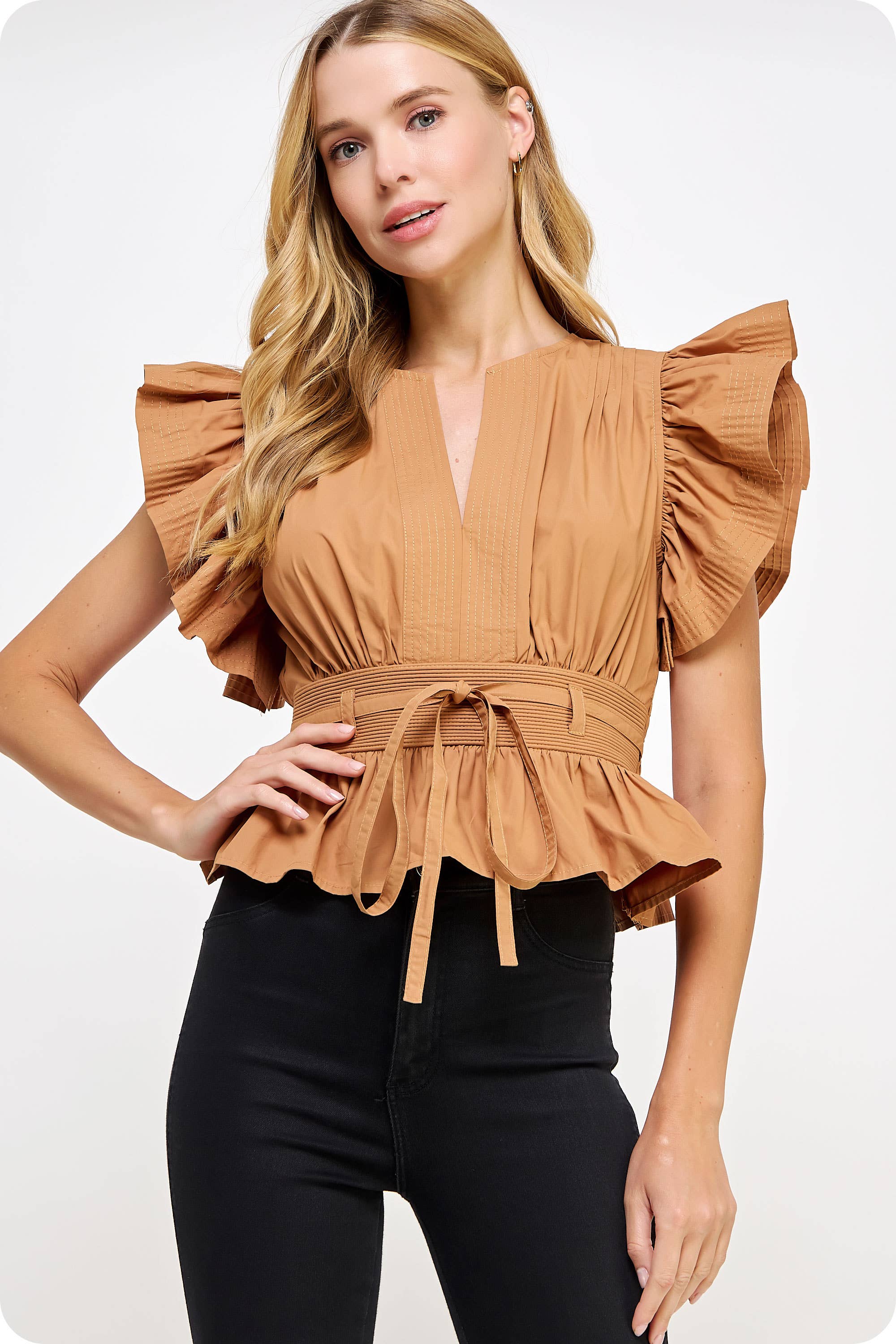 Haut cache-cœur Jacinta à manches bouffantes en vente B2B