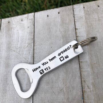 Décapsuleur en acier inoxydable avec « Happy Camper » à l'avant et une bande magnétique à l'arrière. Taille : 7 « x 1,65 « x 0,10". Disponible en finition acier inoxydable ou revêtement en poudre noire.