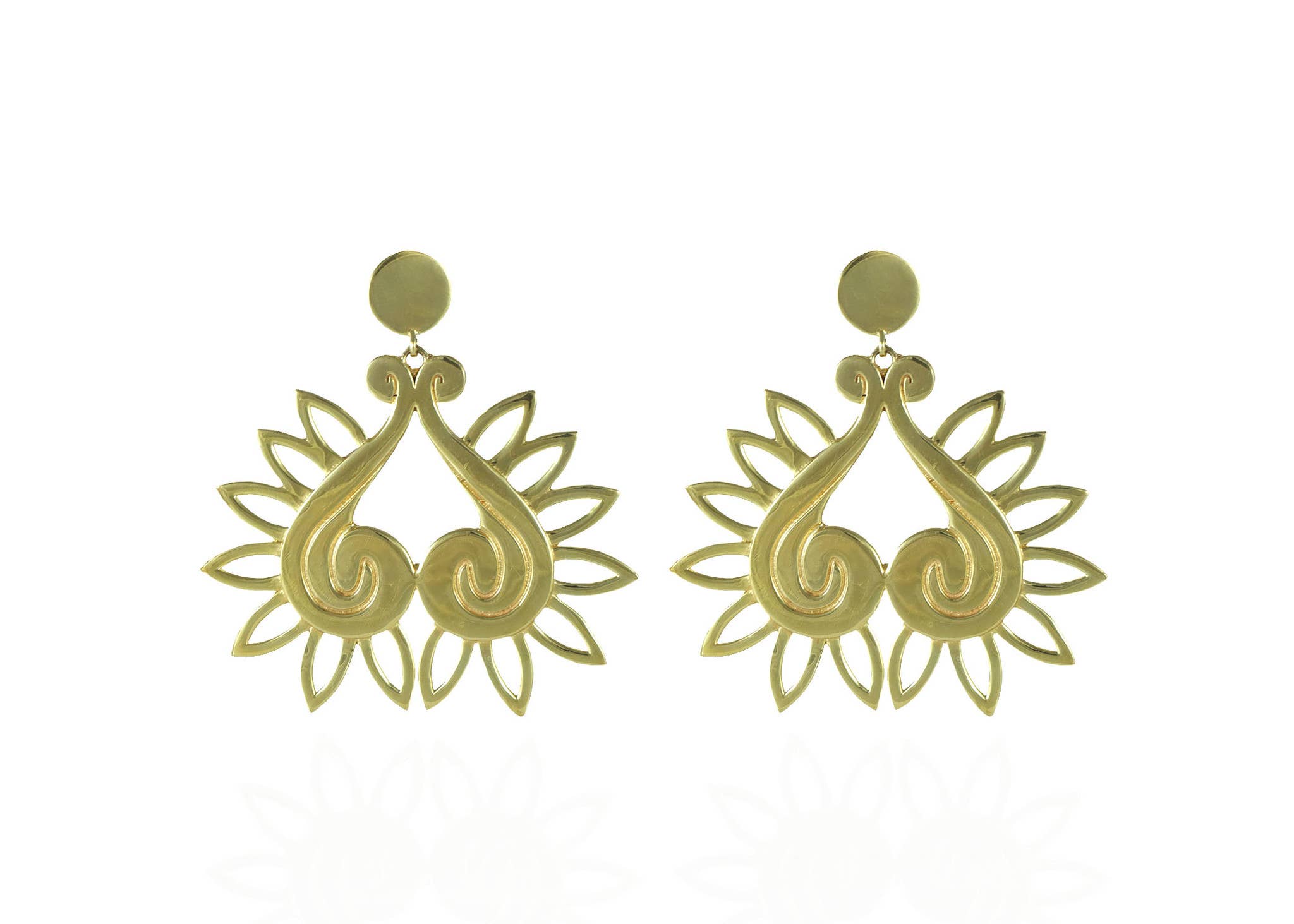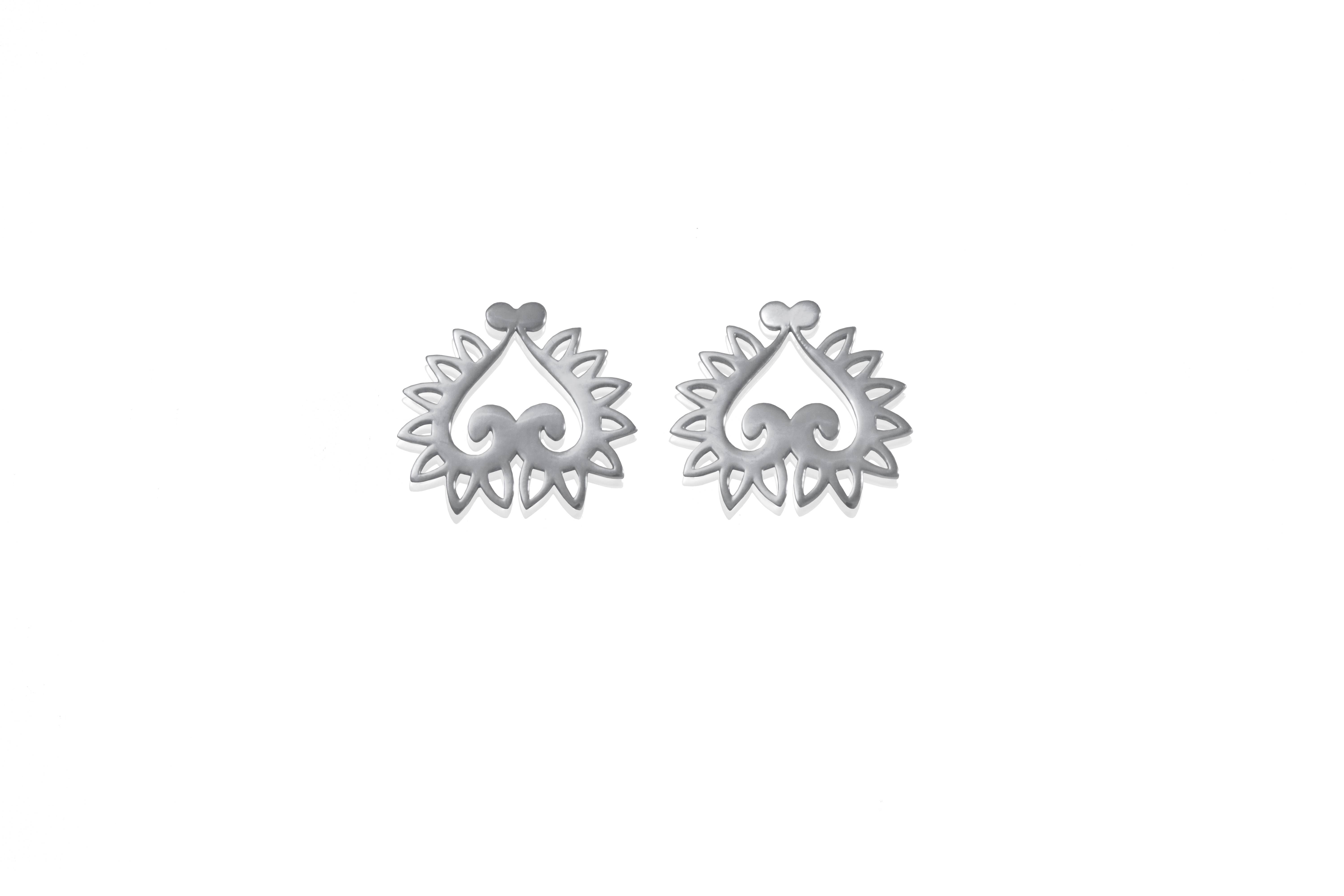 Mina est conçue pour représenter l'immobilité. Une inspiration apportée par la journée de silence pendant les fêtes du Nouvel An balinais. Ce jour-là, l'électricité n'est pas utilisée et tout le monde doit rester à l'intérieur. Cette journée donne aux humains et à la nature le temps de se reposer et de se ressourcer. Le design de Mina reproduit les ondulations de l'eau produites lorsqu'un caillou y est jeté. L'ondulation provoque d'autres vagues, qui s'estompent à mesure qu'elles grossissent, juste pour retrouver son calme paisible. Conçu à New York et fabriqué en Inde. Matériau : laiton doré 14 carats avec boucle d'oreille en argent sterling.