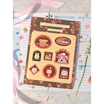 Ce pack d'autocollants est doré brillant. Il a un adorable design de personnage de Sanrio qui n'est pas facile à voir. Il brille encore plus avec une ligne dorée brillante. Il y a une boîte de 6 modèles au total. Taille : 190 × 120 mm