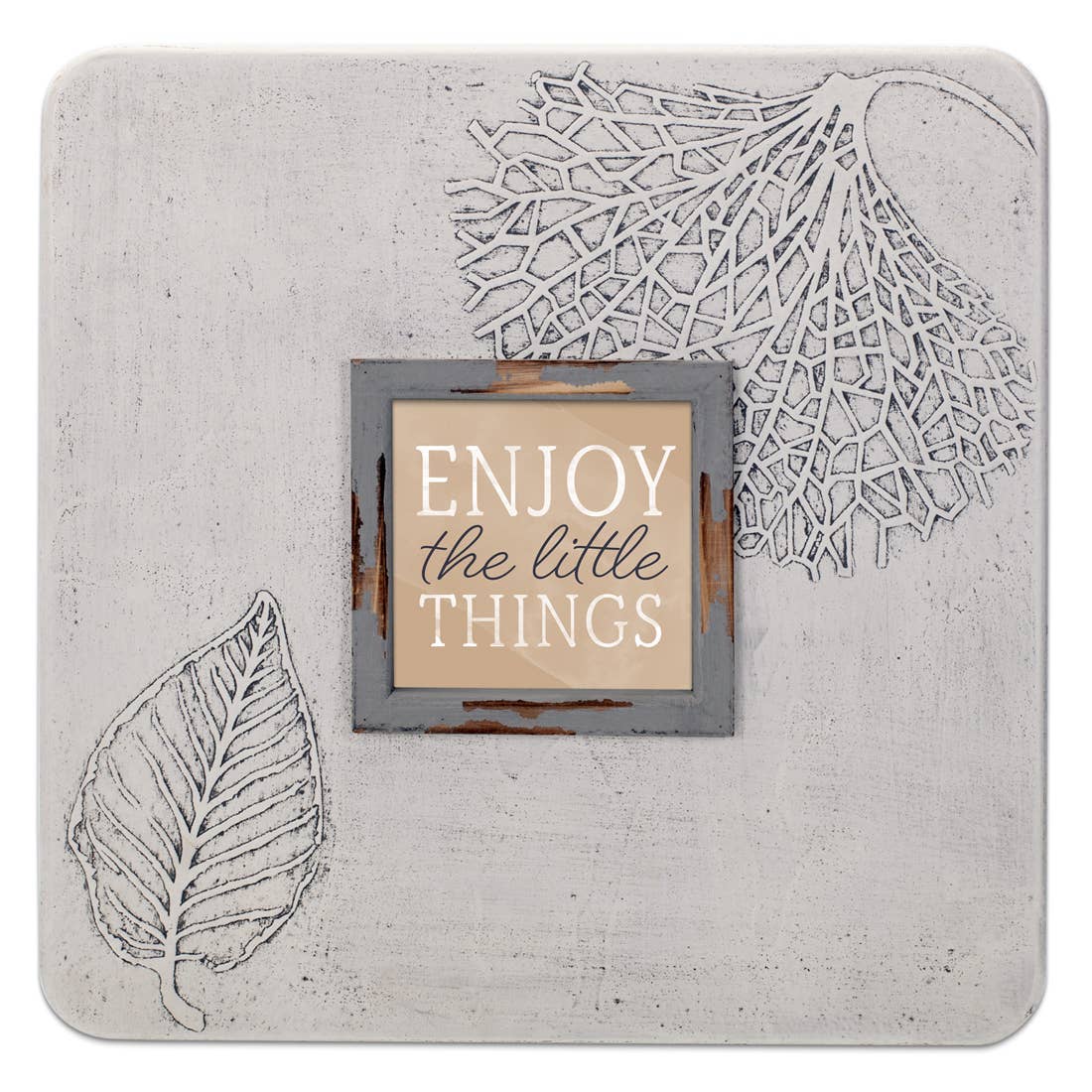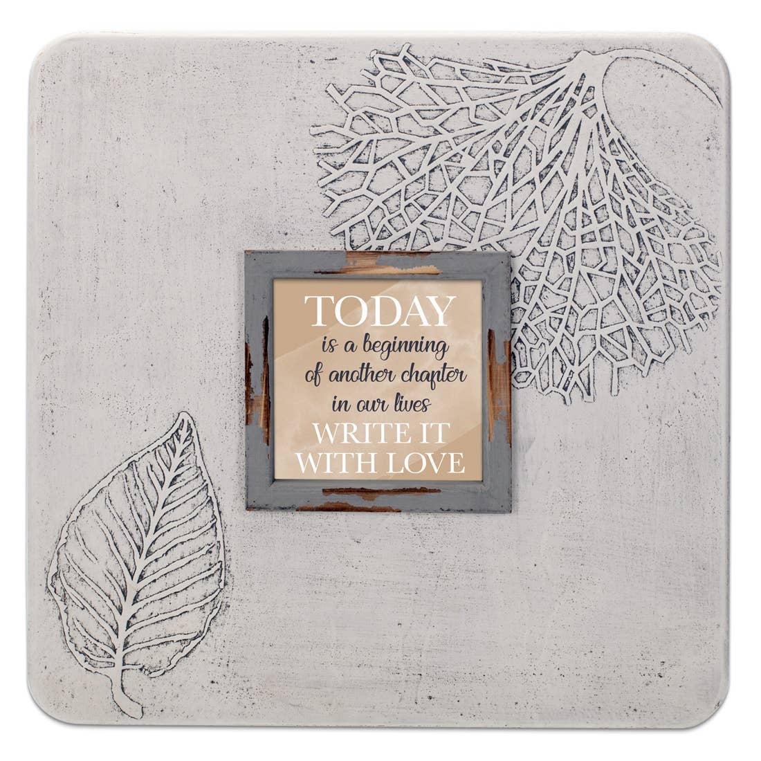 Faites des petites choses avec grand amour. Nos propres cadres photo en pierre au design unique. Les cadres ont des impressions de feuilles détaillées moulées dans le cadre pour un accent supplémentaire sur n'importe quel cadre photo personnel ou laisser avec poème et affichage dans n'importe quel cadre de décoration d'intérieur. Cintres en dents de scie pour un soutien stable. La taille du cadre est de 15,75 x 15,75 po et peut contenir une photo de 5 po x 5 po au choix.