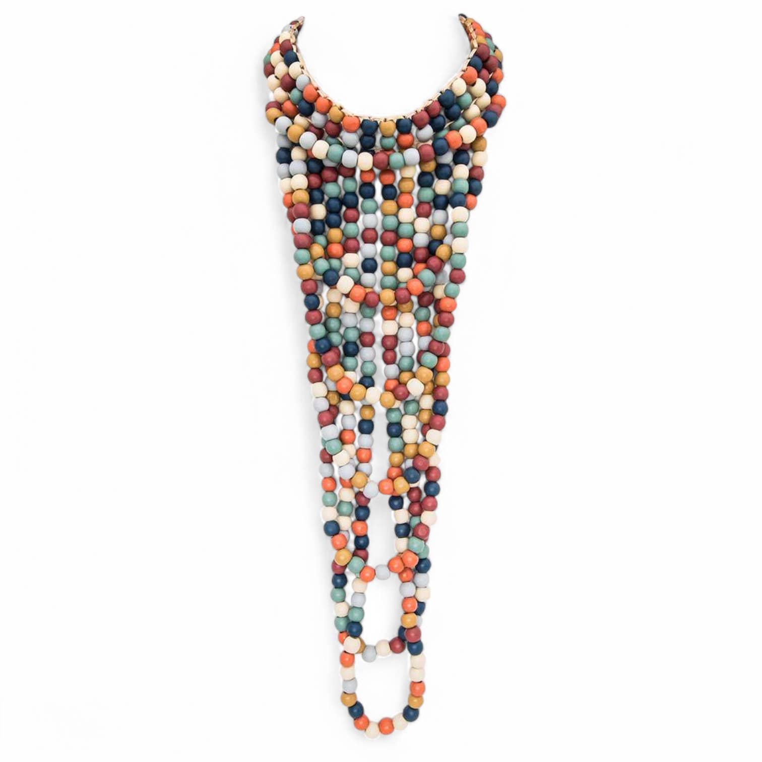 Collier fantaisie à perles en bois multicolores en vente B2B