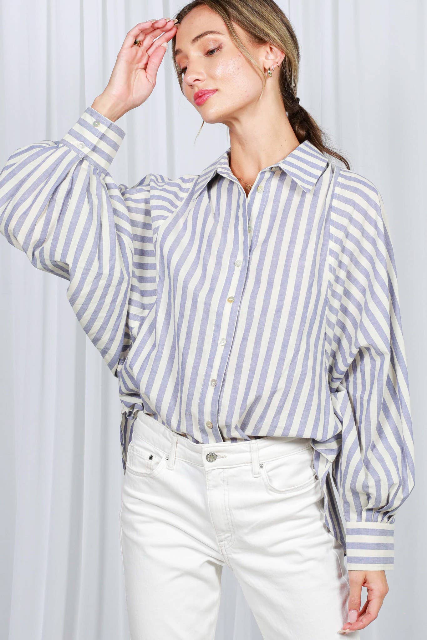 Chemise rayée Heyday à col boutonné asymétrique en vente B2B