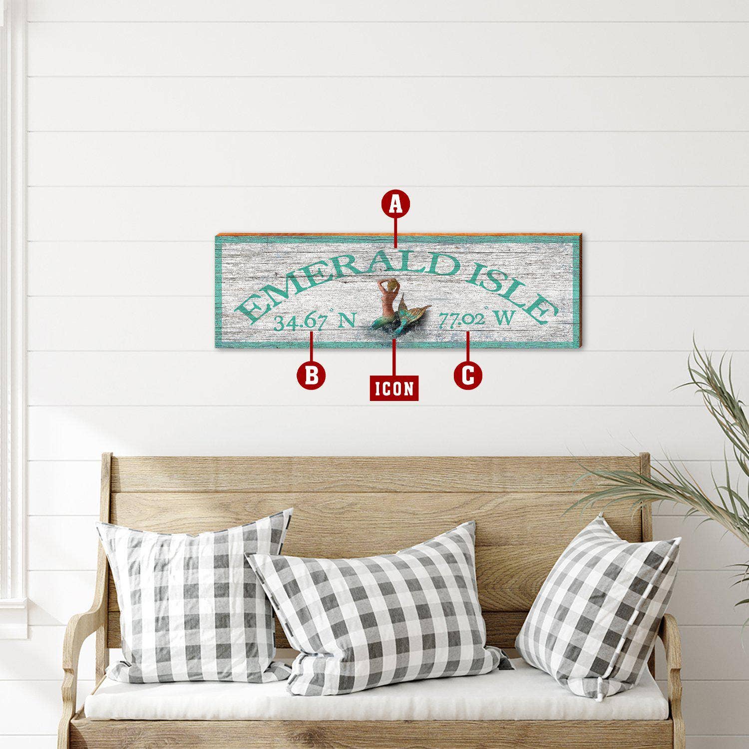 Shabby personnalisable bleu marine/blanc | Choix d'icône | Impression d'art mural sur bois véritable Choix d'icônes : Ancre, Triple Coquillage, Boussole, Sirène, Crabe Bleu, Dollar des Sables, Tortue, Coquillage, Pélican Fièrement fabriqué à la main par Mill Wood Art à Raleigh, NC Caractéristiques : * Imprimé directement sur du bois de pin véritable et vieilli * 100% FABRIQUÉ AUX ÉTATS-UNIS * Intérieur/Extérieur, recommandé sous un porche couvert * Prêt à être accroché avec un crochet denté robuste Merci de soutenir les entreprises familiales fabriquées aux États-Unis !