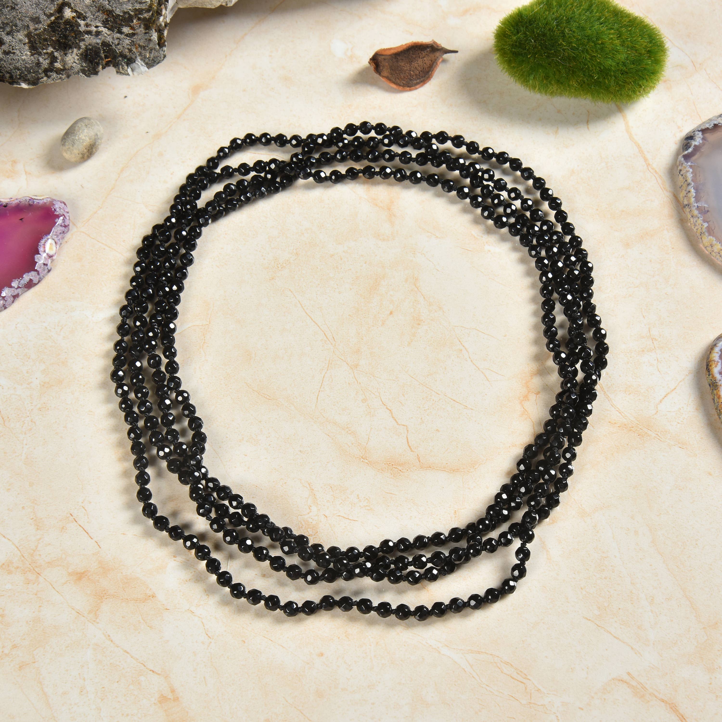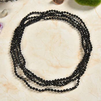 Collier en spinelle noir facetté avec éléments couleur argent, perles 3 mm en vente B2B