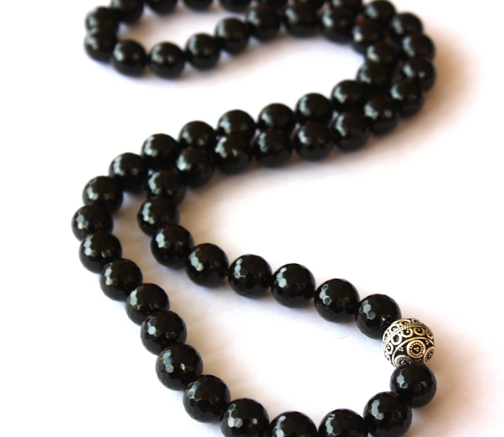 Collier en spinelle noir facetté avec éléments couleur argent, perles 3 mm