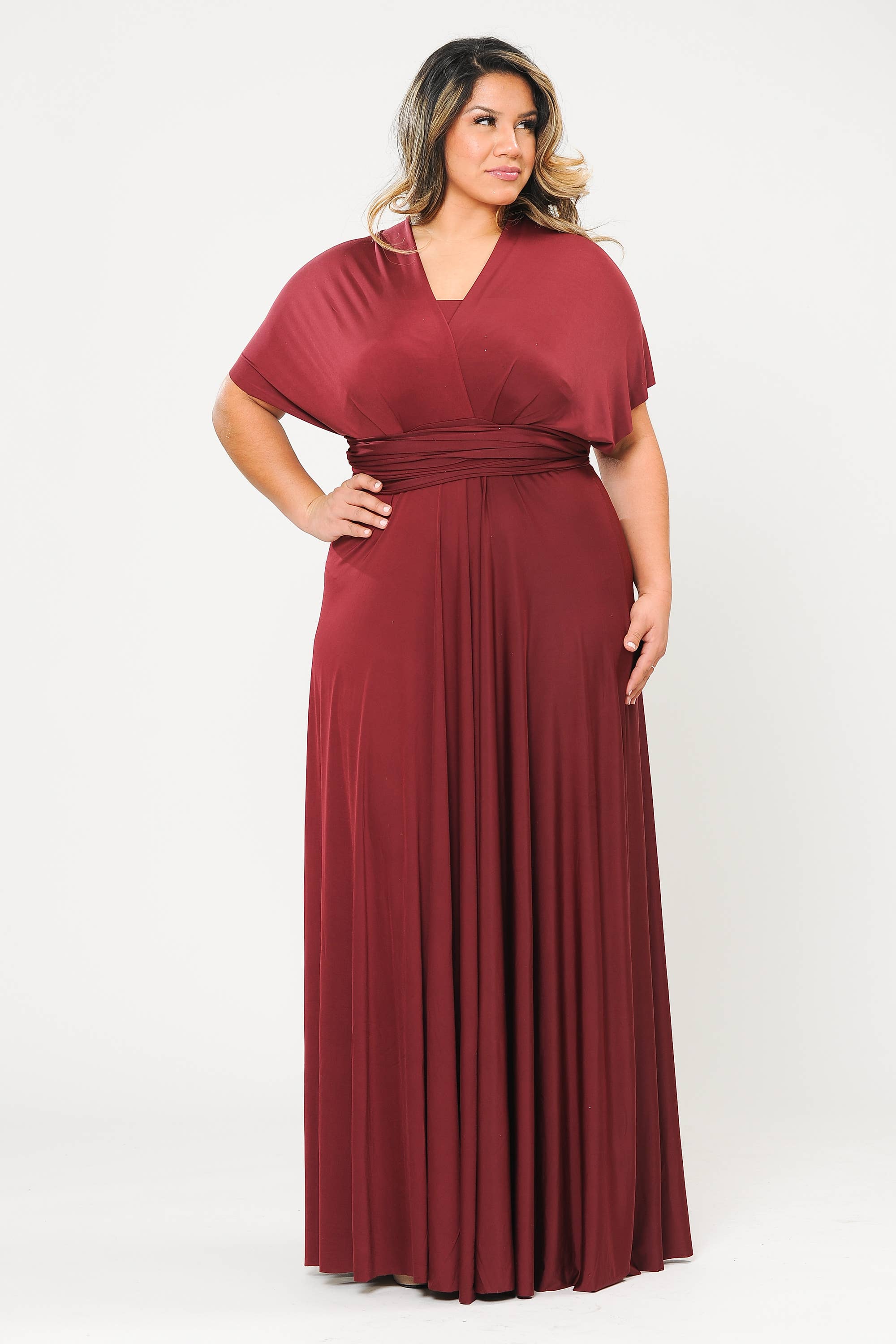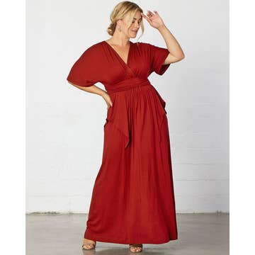 Robe longue portefeuille grande taille avec volants rouges Nurode's