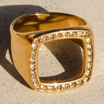 La bague parfaite ! Cette bague de forme oblongue incurvée est magnifiquement détaillée avec un design en damier. Il a une belle finition polie lisse lui donnant un look exclusif ! Acier inoxydable plaqué or 18 K qui dure longtemps sans ternir Sans plomb ni nickel Largeur de la pièce maîtresse : 0,30 po Taille de bague : Taille 7