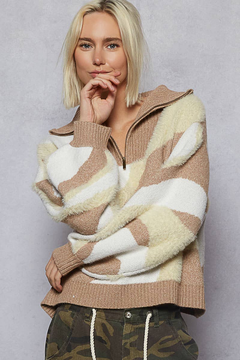 Gilet en chenille uni à manches longues avec poches EN SOLDE