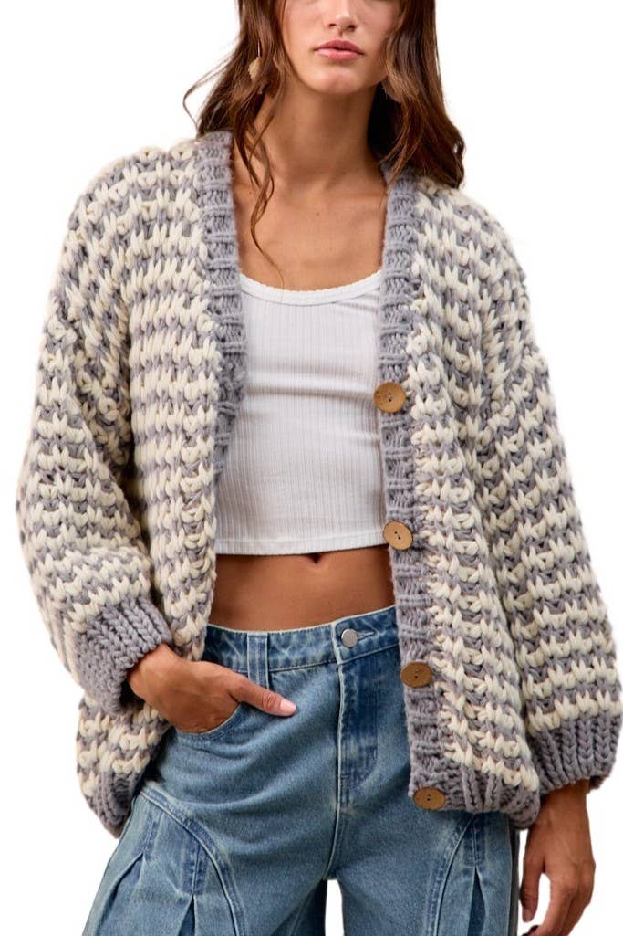 Pull cardigan à col en V à manches longues et tissage ouvert EN VENTE