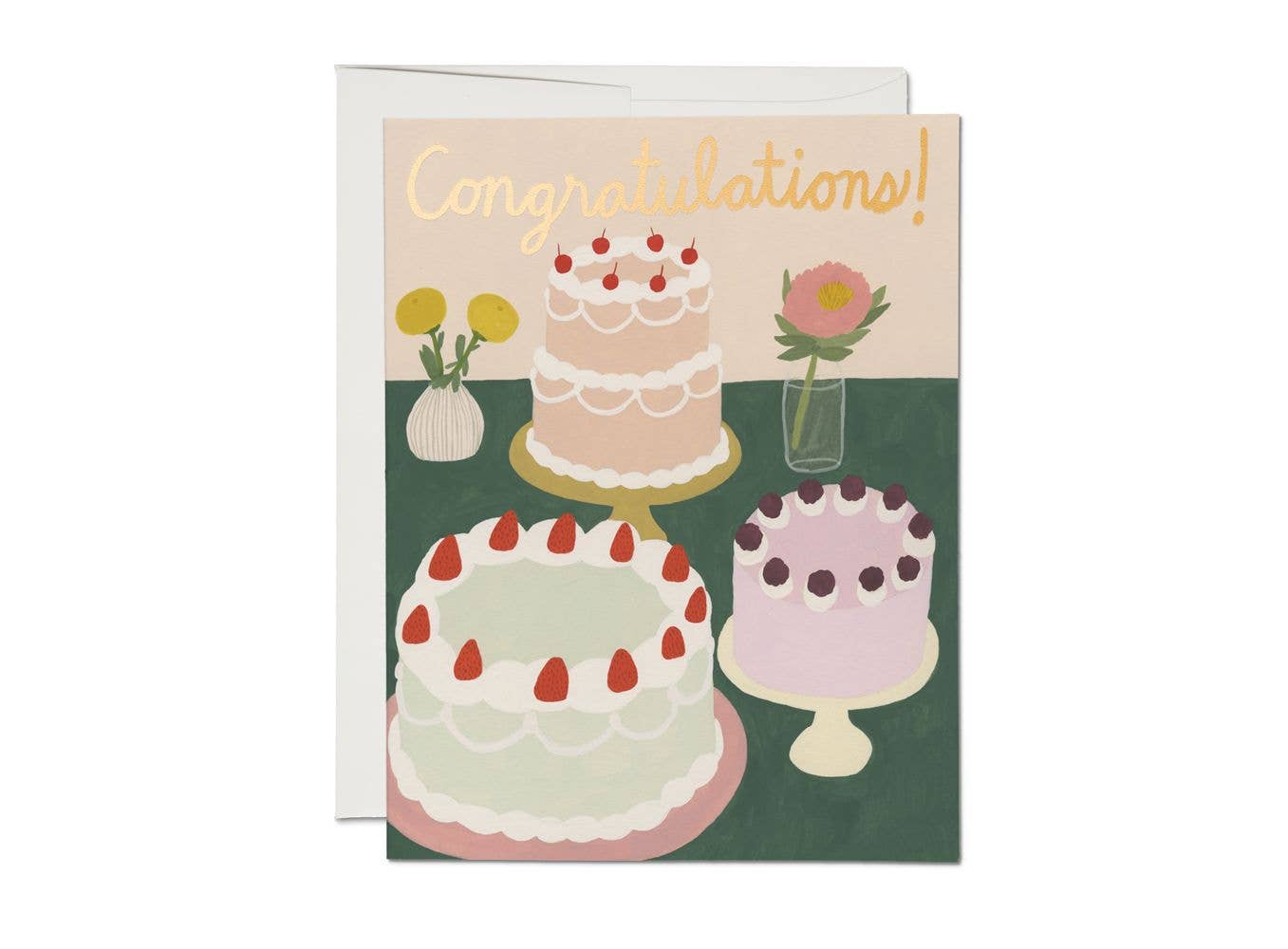Gâteau de mariage floral — Carte de félicitations, enveloppe Kraft incluse