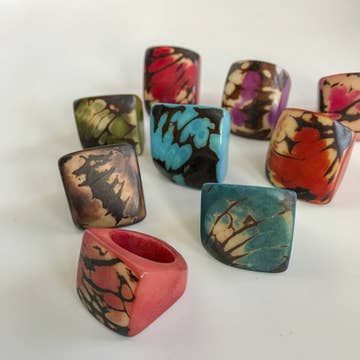 Un motif intemporel sur une bague en verre fait main, la bague Tortoise Shell est la bague cocktail parfaite inspirée par les techniques vénitiennes vintage.