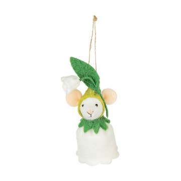 Blottissez-vous avec ce bébé lapin mignon et douillet dans une couverture. Un excellent cadeau pour toutes les saisons. Une étiquette festive « Fair Trade Home & Garden » est accrochée à une boucle de suspension de 3 pouces. Fabriqué exclusivement pour DZi Handmade, membre de la Fair Trade Federation. 4 « H x 1,75" L