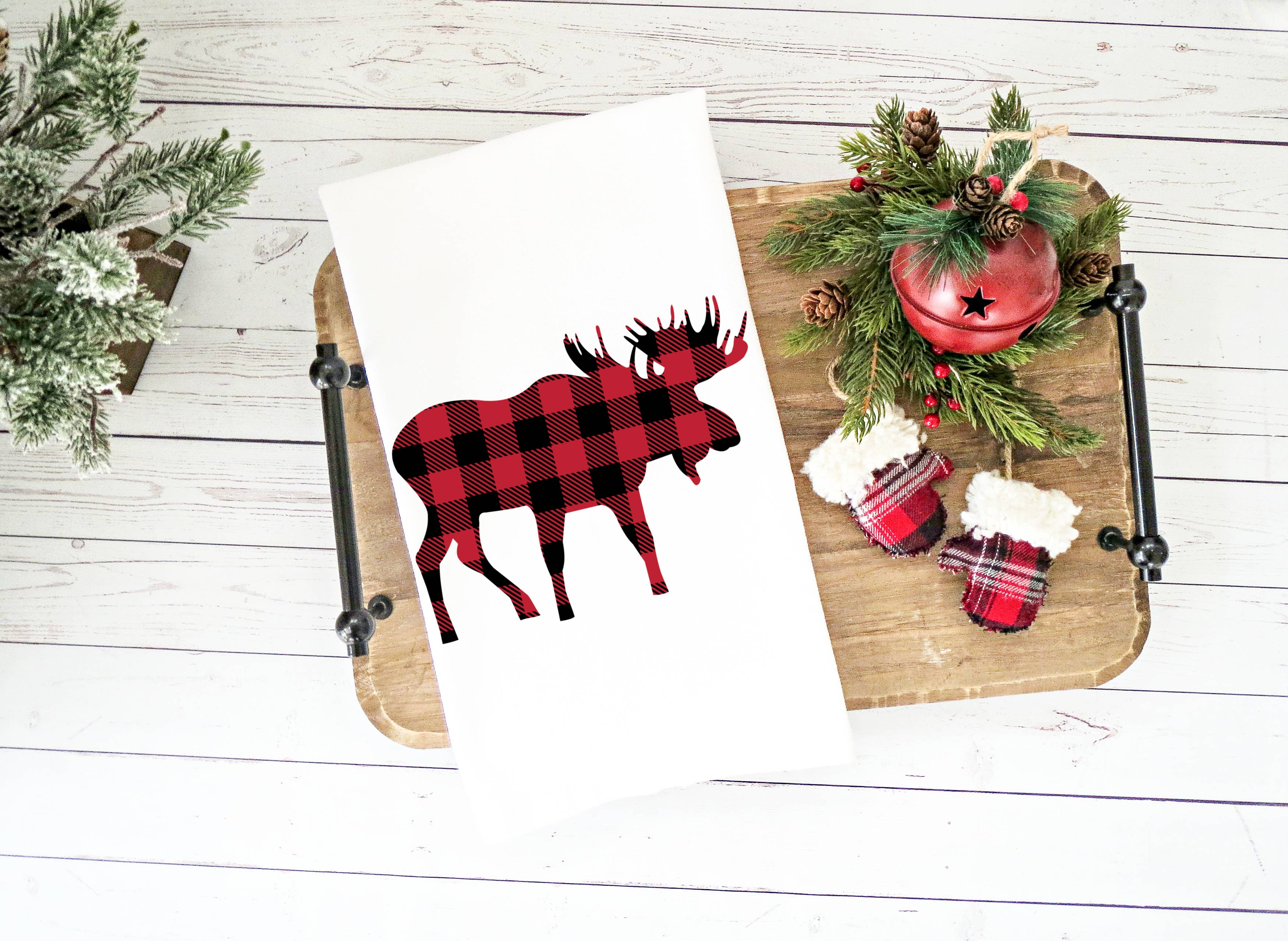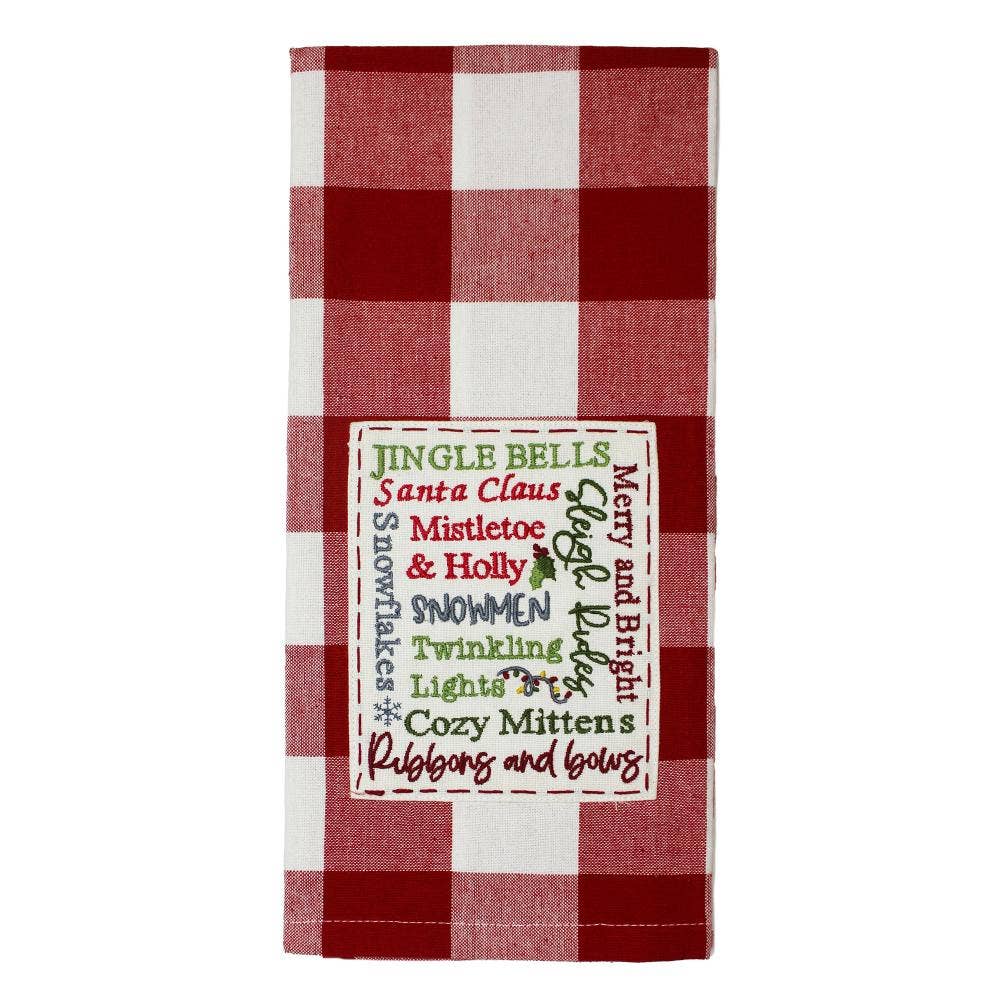 La serviette Red Buffalo Check Tis the Season est une serviette en tissu doux avec un motif de Noël à la ferme. La serviette est fabriquée en tissu rouge et noir à carreaux de buffle et arbore l'image d'une paire de silhouettes de cerfs blancs à côté de la phrase « C'est la saison ». Dimensions : 27,5 pouces de haut par 18 pouces de large.