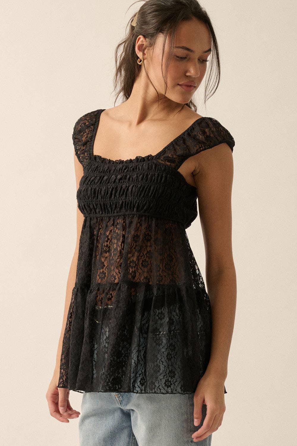Haut court sexy à col nu en dentelle festonnée en vente B2B