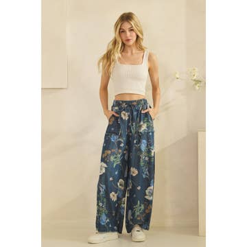 -Imprimé fleuri -Pantalon en denim Le mannequin mesure 1,73 m et porte une taille S.