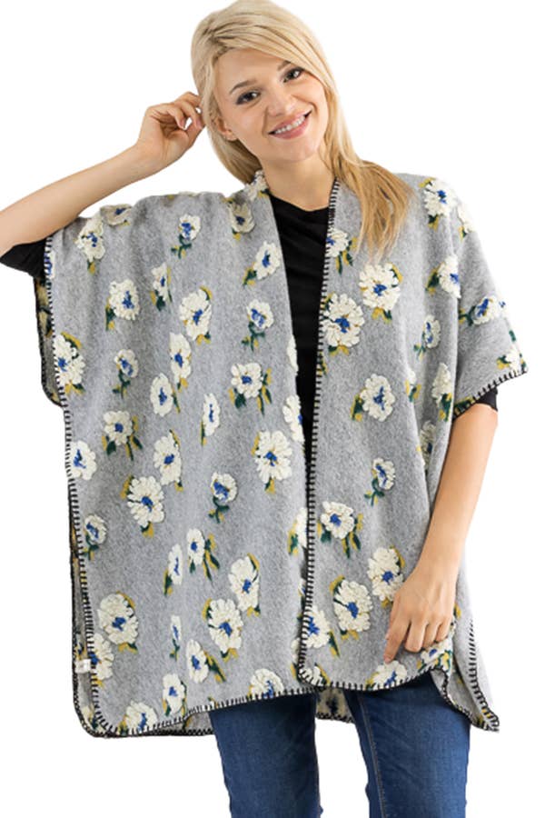 Poncho léger - Encre blanche fougère - Automne et hiver
