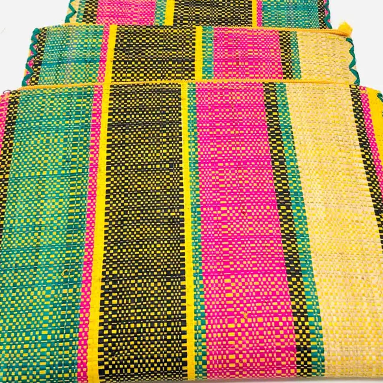 Ensemble Amelia de 3 pochettes imbriquées unies en raphia tissé