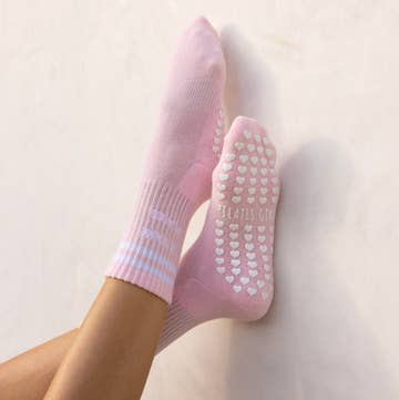 Chaussettes antidérapantes « J'adore le Pilates » en vente B2B