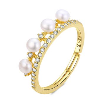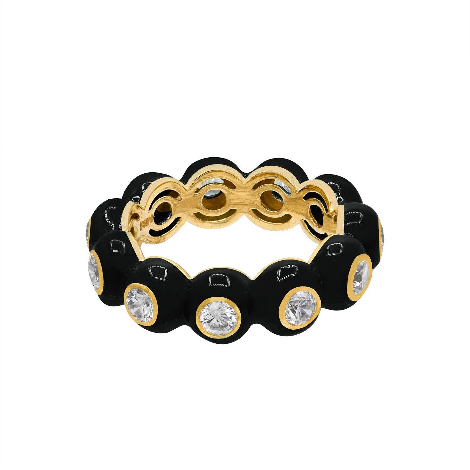 Bague en argent sterling plaqué or avec zircone cubique et émail. Disponible en taille 6, 7 et 8.