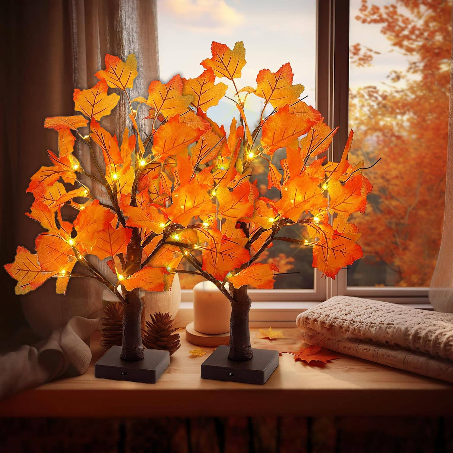 De beaux arbres éclairés chaleureusement. Un excellent ajout à notre offre de décorations d'automne.