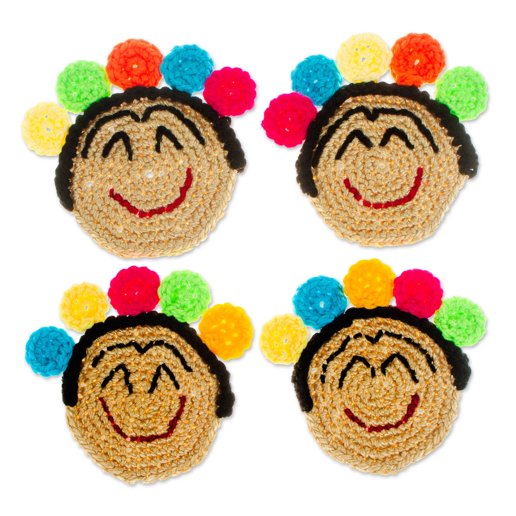 Ne vous inquiétez pas... Bead HAPPY ! Vous ne pouvez vous empêcher de sourire lorsque vous installez la table avec de magnifiques sous-verres en perles groovy dans nos designs emblématiques préférés : Peace, Love and Smile. Ensemble de 4 sous-verres Smile. Fabriqué à la main en perles de verre avec un support lisse et facile à essuyer.