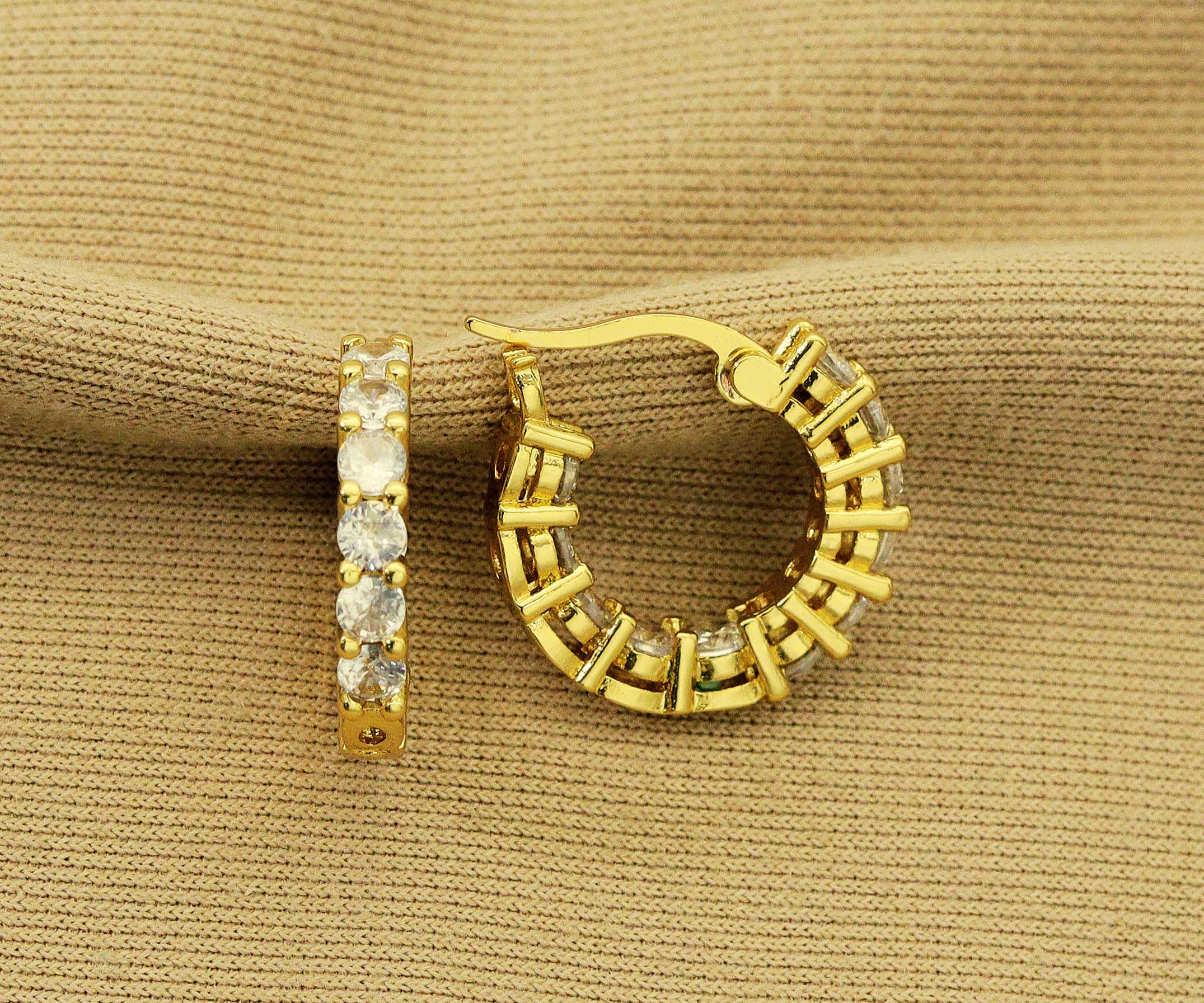 Boucles d’oreilles mini créoles huggie à motif damier ajouré en vente B2B