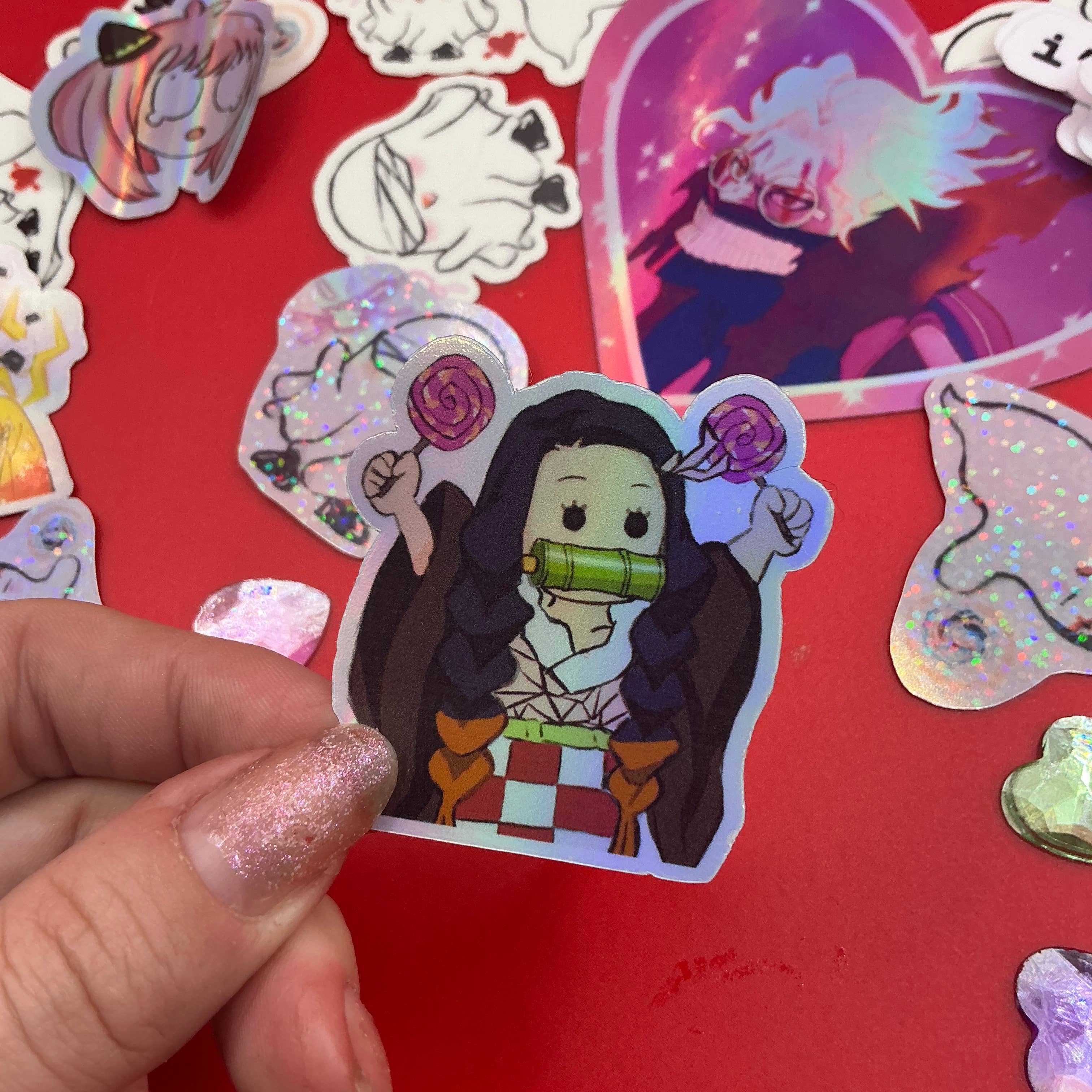 Autocollant tampon holographique étanche Nezuko demon slayer en vente B2B
