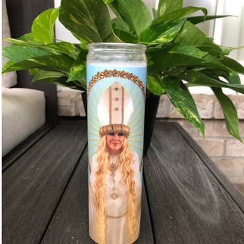 Oui Chef La Bougie de Prière de l'Ours Bougie de Prière Saint Célébrité. Cire blanche. 8 pouces de hauteur. Contenant en verre. Étiquette en vinyle brillant de haute qualité.