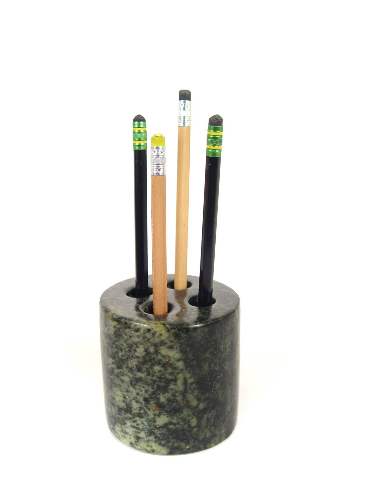 Cette sculpture Shona représentant un oiseau avec ses ailes battantes vers le haut est une belle sélection pour ajouter de l'art et de la sculpture à votre espace. Les lignes et les courbes de cette pièce sont délicates et délicieuses. Sculpté à la main au Zimbabwe par l'artisan Cuthbert Tenday, sa couleur variera légèrement du brun au gris ou verdâtre, panaché ou moucheté. La pierre est appelée serpentine et sa beauté naturelle est variée, il n'y en a pas deux identiques. Mesures : 5,5 po L, 12 po H, 2 po P Artisan : Cuthbert Tendayi Zimbabwe