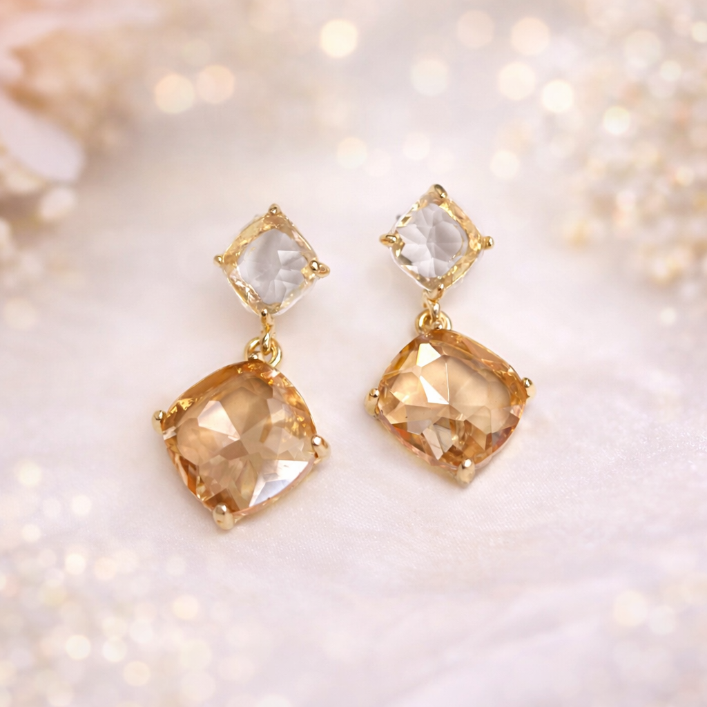 ZIA - Boucles d'oreilles pendantes en forme de larme CZ cristal en or rose en vente B2B