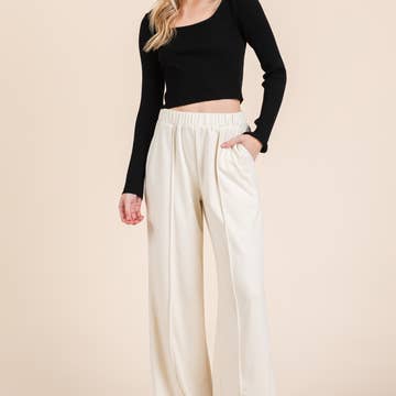 Élevez votre style avec ce pantalon noir en maille à taille haute et jambes larges. Doté d'une coupe flatteuse à taille haute et d'une silhouette décontractée à jambes larges, ce pantalon offre le parfait mélange de confort et de sophistication. Confectionné dans un tissu en maille doux et extensible, il est idéal pour des looks à la fois décontractés et habillés. Matériau/x : 95 % POLYESTER, 5 % SPANDEX Échelle de taille : S-M-L Ratio de taille : 3-2-1 Mesure/s : L:40" B:" W:24" IS:30"