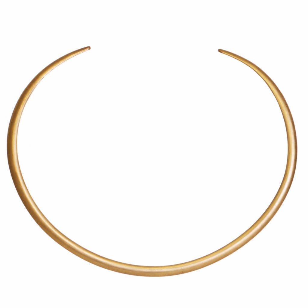 Il s'agit d'une version plus fine du collier simple. Peut être porté vers l'avant ou vers l'arrière avec une extrémité ouverte vers l'avant. Laiton massif. Fabriqué à la main. Livré dans une pochette de protection avec cordon de serrage avec logo.