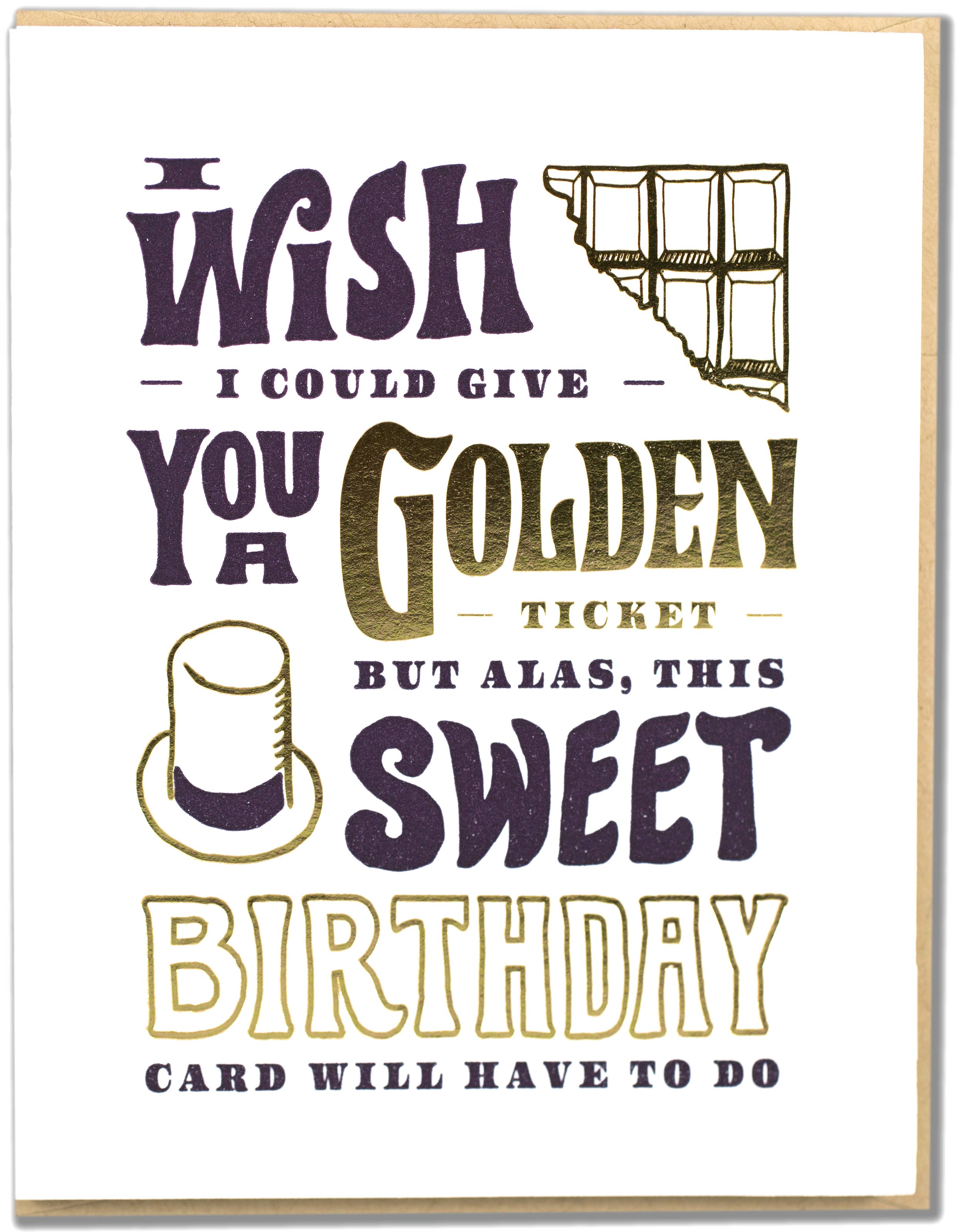 Voici votre billet doré Félicitations, chanceux(se) ! Ce billet unique peut être échangé contre : • Carte pliée format boutique (14 x 10,8 cm) • Intérieur vierge • Enveloppe kraft brun A2 (14,6 x 11,4 cm) • Autocollant à gratter inclus • Écrivez votre message à la main dans l’espace prévu puis recouvrez-le de l’autocollant • Grattez avec une pièce pour révéler le message caché • Emballé dans une pochette transparente en cellophane • Autocollant extérieur mettant en avant cette caractéristique spéciale • Instructions incluses • Imprimé de manière durable aux États-Unis Créez votre propre carte à gratter ! Il suffit d’écrire votre message à l’endroit prévu puis de le couvrir avec l’autocollant fourni. En grattant avec une pièce, votre message surprise manuscrit apparaîtra.