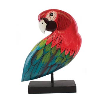 Statue suspendue en forme de perroquet tropical sur perchoir, 40 po, rouge et jaune en vente B2B