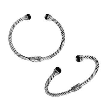 Bracelet à manchette en argent sterling à bouts sphériques de style Bali en vente B2B