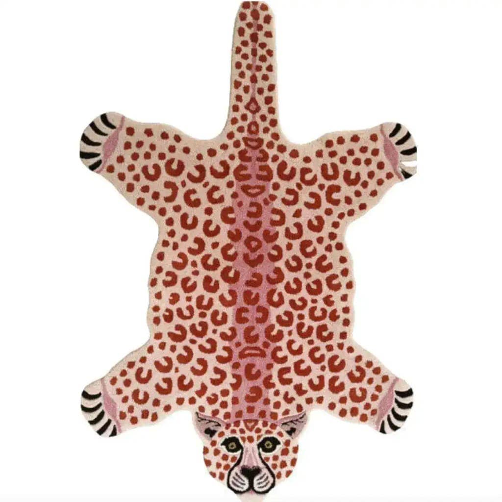 Tapis en laine rose avec accent de tigre tibétain