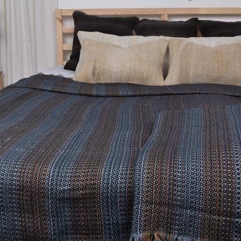 Détails Matériau : 100 % coton Technique : Patchwork fait main à partir de restes de sari Dimensions : 50” x 70” Entretien : Nettoyage localisé uniquement Garantie : Aucune Occasions : Idéal pour la fête des mères, la remise des diplômes, l'été ou la décoration de dortoir Remarque : Les couleurs et motifs varient ; les images représentent la palette de couleurs générale Célébrez l'artisanat et la durabilité avec ce plaid Kantha fait main. Chaque pièce est créée de manière unique à partir de tissus de sari réutilisés, soigneusement assemblés dans un design patchwork coloré qui raconte une histoire de tradition et d'art. Accentuée par des surpiqûres rayées et un dos uni, ce plaid léger ajoute du charme, de la texture et de la personnalité à n'importe quel espace. Parce qu'il est fabriqué à partir de matériaux récupérés, aucun plaid n'est jamais identique—chacun est une œuvre d'art unique. Parfait pour superposer sur votre canapé, lit ou chaise, il constitue également un cadeau attentionné pour des occasions spéciales.