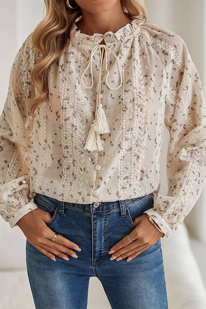 Blouse à imprimé léopard avec manches à volants / Mesures du style pour la taille S / Conçu aux États-Unis - Longueur du corps : 24 po - Largeur de la poitrine : 42 po - Longueur des manches : 25 po / Tailles du modèle - Porte la taille S - Taille 5' 9", Poitrine 32", Taille 25 1/2", Hanches 36" / Contenu du préemballage - Dans un paquet de XS(1), S(2), M(2), et L(1) par couleur uniquement / Contenu du tissu - TISSÉ / 100 % Polyester