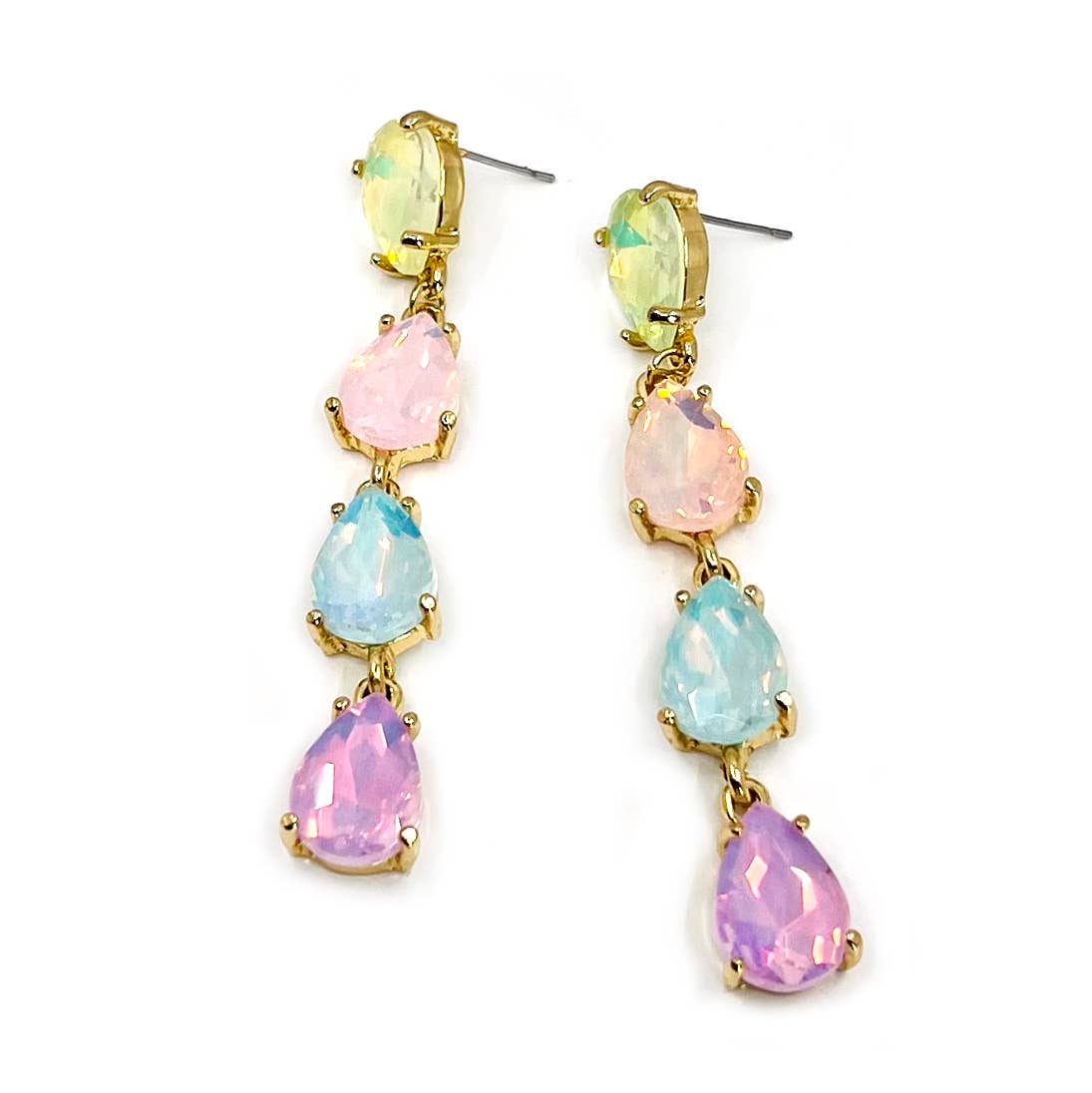 Matériaux strass, hameçons en plaqué or 18 carats Dimensions Longueur de chute : 3 pouces ; largeur : 0,75 pouces Ces boucles d'oreilles en strass sont inspirées des belles couleurs du printemps ! Ils présentent des strass bleu clair, rose/lavande et transparents dans un agencement moderne et unique. Ils sont suspendus à environ 3 po du lobe et mesurent environ 0,75 po à leur point le plus large. Les hameçons sont plaqués or 18 carats et sans nickel. Ces boucles d'oreilles sont assez légères et doivent être confortables à porter toute la journée.