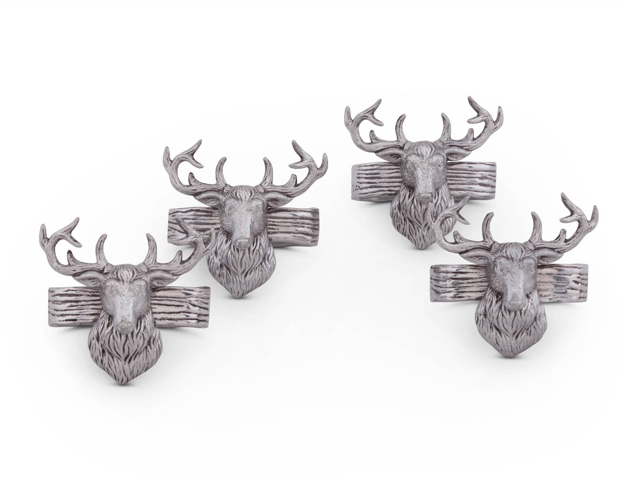 Ensemble de 4 anneaux de serviette en forme de tête de cerf en bronze de Noël en vente B2B