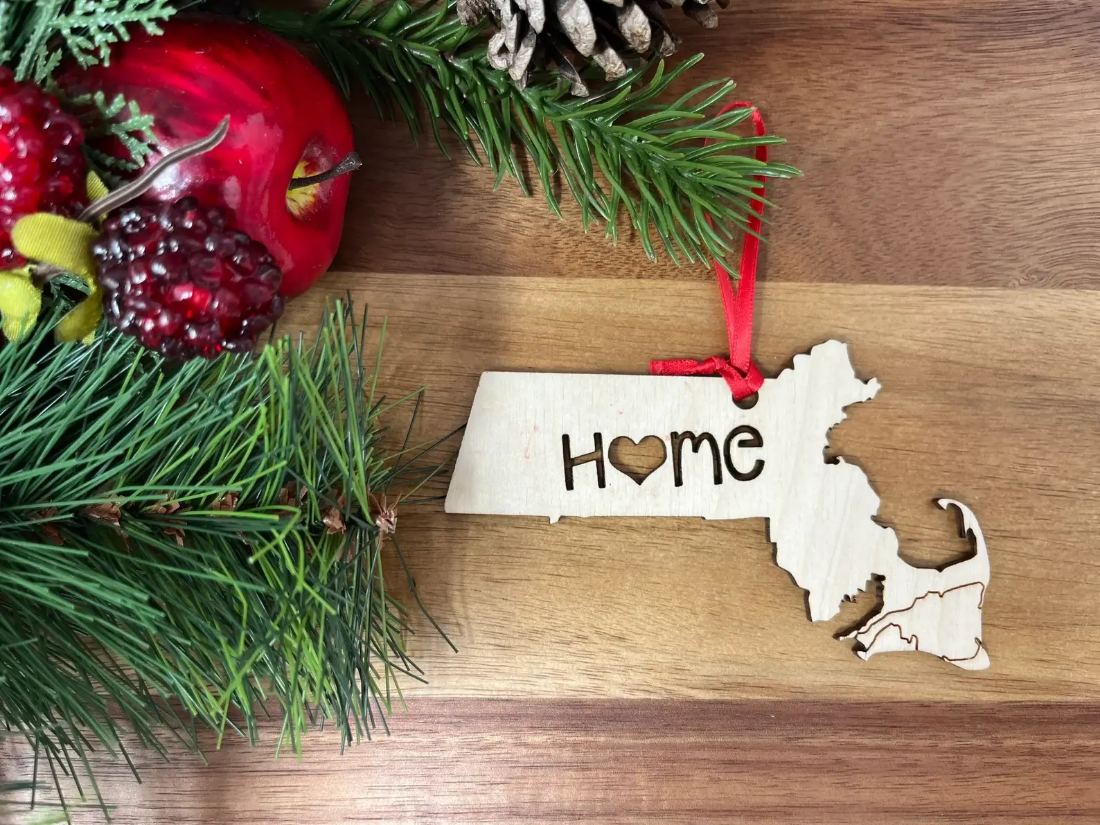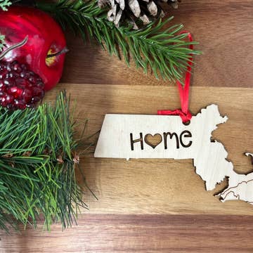 Ornement de Noël en bois Merry Christmas NEW HAMPSHIRE NH en vente B2B