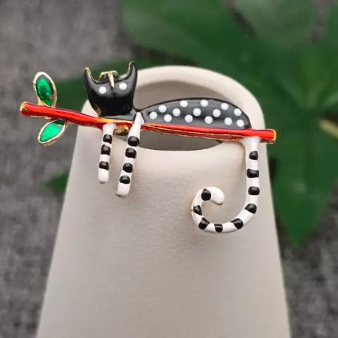 Broche Chat Drôle en Émail Blanc & Noir en vente B2B