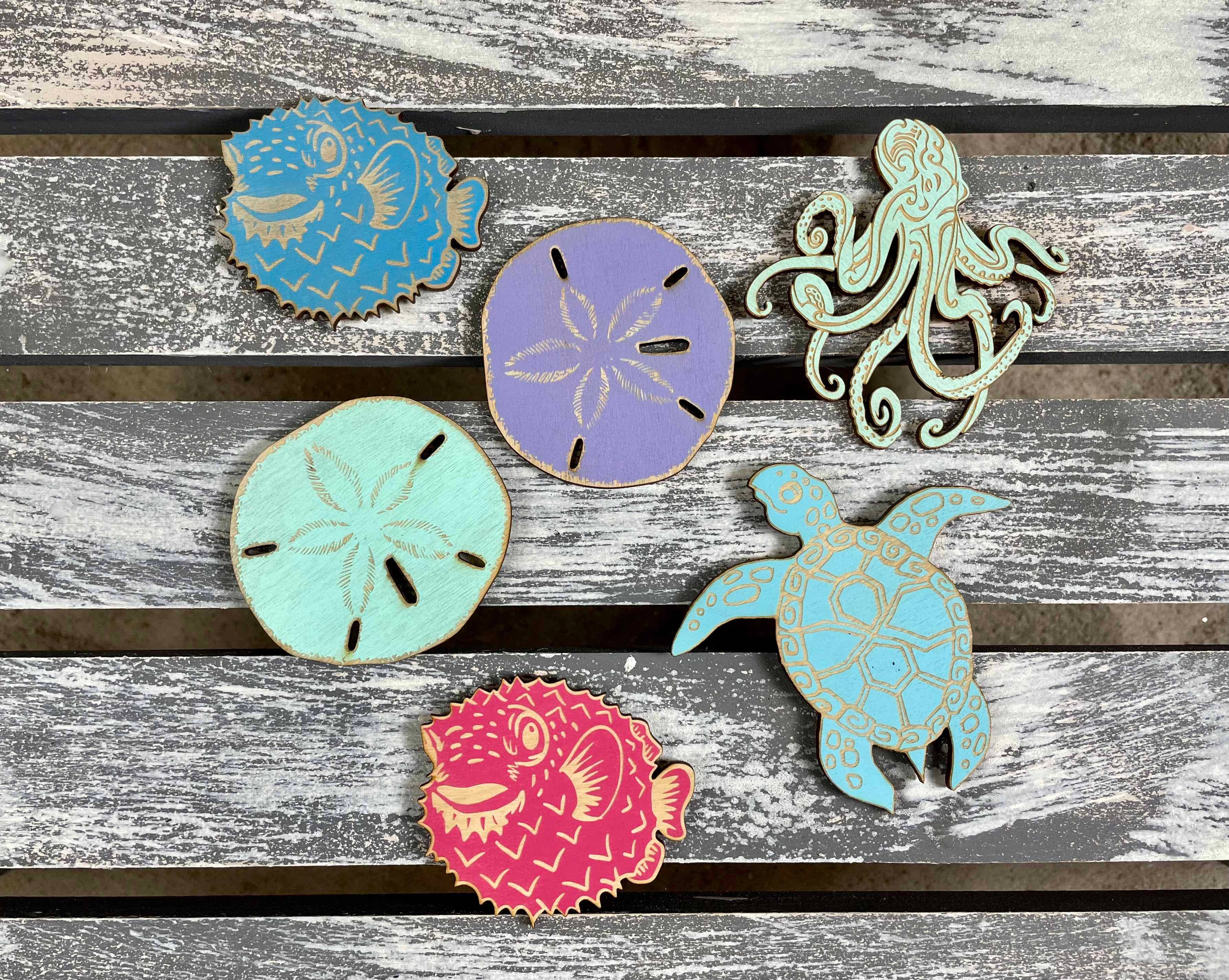 Nos aimants en bois pour réfrigérateur sont les souvenirs parfaits de leur lieu de vacances préféré. Ils sont fabriqués en noyer massif, peints et gravés, puis scellés. Un aimant rond de 2,5 cm est collé à l'arrière. Le nom de la plage ou la ville et l'État sont inclus. Dimensions : environ 2,25 à 2,5 pouces Disponible en bleu sarcelle tropicale et en corail côtier, voir la photo pour les options. Ils sont conçus et découpés dans notre petit atelier à partir de bois massif et vous sont expédiés. Cela dit, chaque assainisseur d'air possède ses propres caractéristiques uniques en fonction des différents grains et couleurs de tout produit naturel.